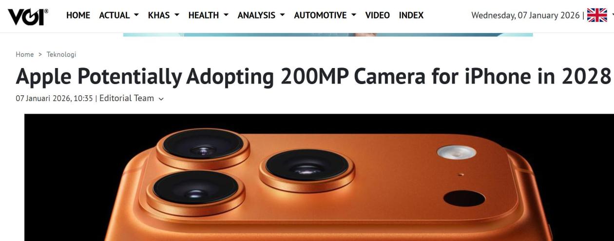 1月7日消息,据voi援引9to5Mac报道称,苹果公司正规划在其iPhone产品线中引入2亿像素主摄,预计最早于2028年正式亮相。若消息属实,这将是苹果自iPhone 14系列以来首次大幅提升摄像头分辨率——此前其主摄一直维持在4800万像素。