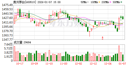 截至1月7日午盘,贵州茅台报1426.10元/股,跌0.13%。