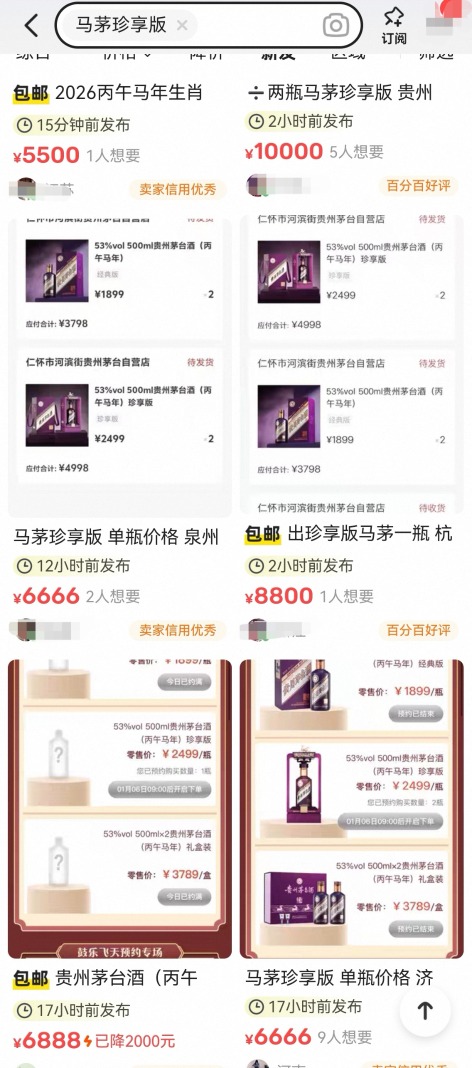 2026年新一轮“马茅”开售两日,2499元的珍享版在二手平台溢价普遍超千元。