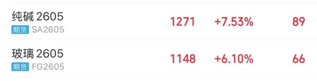 1月7日,玻璃、纯碱期货价格大幅上涨,主力合约盘中涨幅均逼近8%,市场情绪显著回暖。截至午盘收盘,玻璃期货主力合约上涨6.10%,纯碱期货主力合约上涨7.53%。