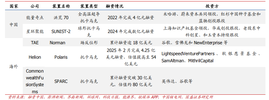 全球资本开支也在快速增长。据《The global fusion industry in 2025》,2025年全球核聚变行业融资规模达到97亿美元,2021-2025年复合年均增长率(CAGR)达到50.32%,科技巨头英伟达、微软、谷歌等均下场布局核聚变。国内方面,中国聚变公司成立并获7家央国企合计投资超百亿,诺瓦聚变能源破纪录完成5亿元融资。