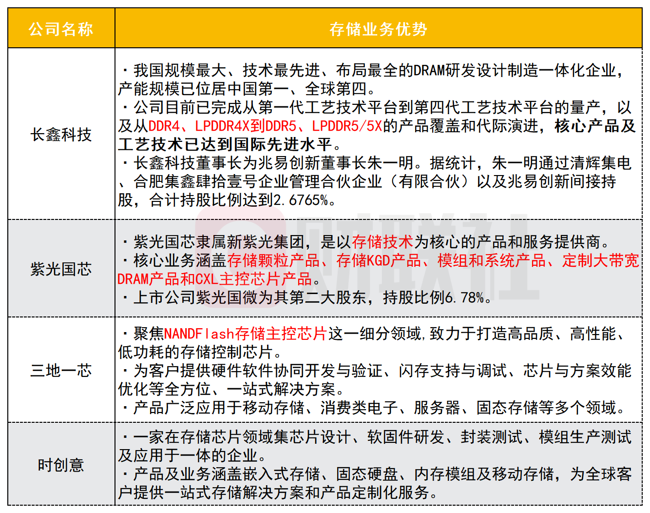 A股头部存储公司企业优势: