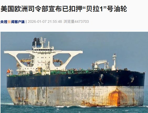 据央视新闻,美国欧洲司令部1月7日宣布,美方已在北大西洋扣押“贝拉1”号油轮,称该油轮违反美国制裁措施。