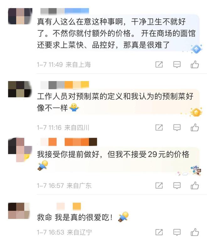 1月7日消息,有消费者反映连锁餐饮品牌和府捞面在后厨使用的浇头、汤底均是袋装,质疑主打“养生面”概念的和府捞面是预制菜。