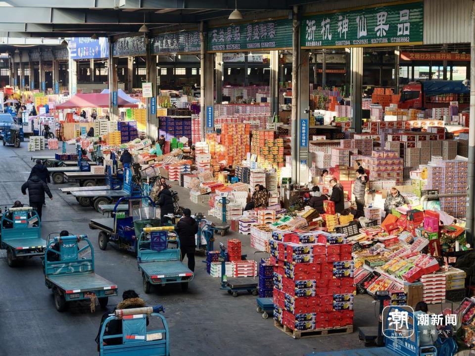 勾庄水果批发市场一派繁忙景象。潮新闻记者 王嘉楠 摄