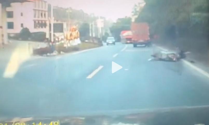 货车挂倒摩托车视频截图