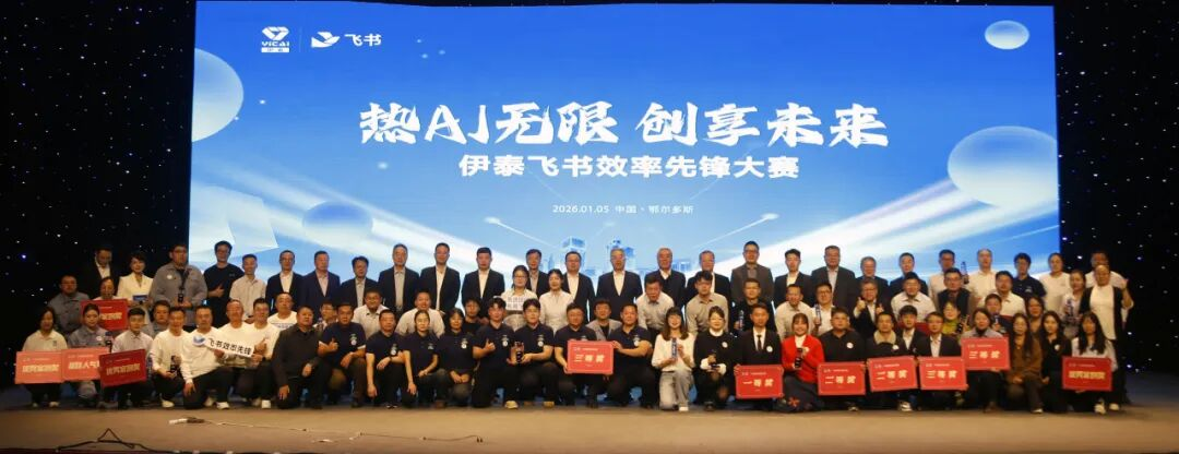 1月5日,伊泰集团举行飞书效率大赛。大赛旨在深化飞书办公平台与业务场景融合,激发全员数字化创新潜能,集中展示并推广数字化转型的优秀实践。集团公司党委书记、董事长、总裁刘春林,集团公司党委委员、董事、副总裁葛耀勇,集团公司党委委员郎军,集团公司董事王三民,集团公司董事张钧昱,集团公司副总经济师王春迎等领导,以及飞书全国客户成功负责人范骏作为合作伙伴代表出席活动。