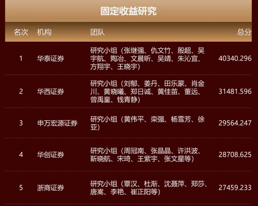 图/2025证券时报最佳分析师 固收研究评选结果