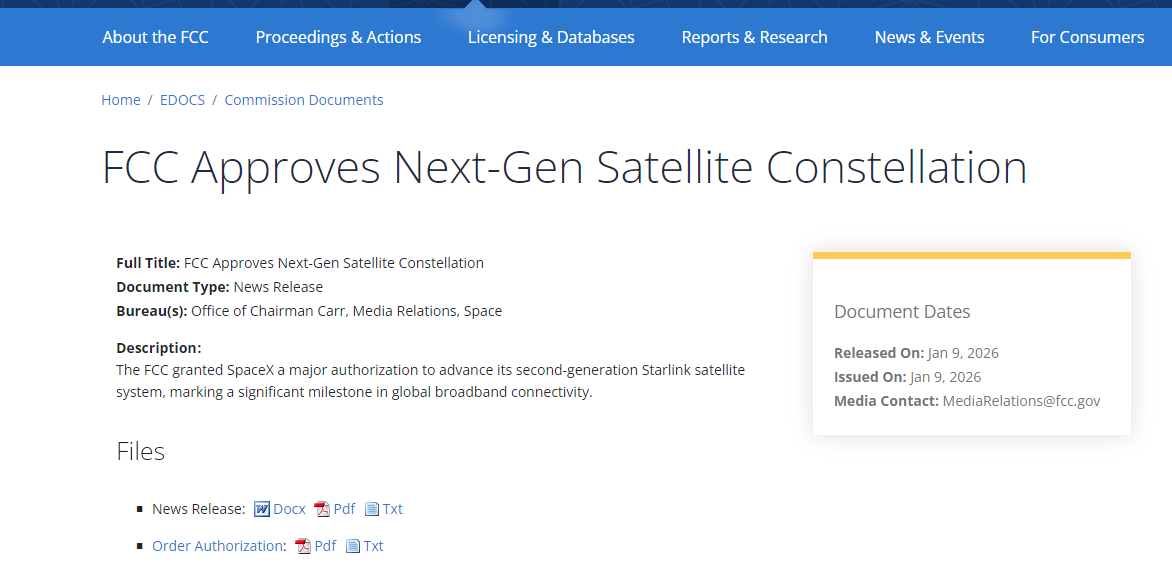 FCC同时指出,第二代星链卫星的实际运行表现已缓解了外界对碰撞风险和卫星失效率的担忧,并驳回了有关完整星座可能产生数千颗无法机动卫星的评论意见。