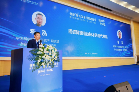 在主题演讲环节,由江苏苏美达电力运营公司总经理徐进主持。来自中国科学院物理研究所的研究员、协会专家委员会主任委员李泓,厦门新能安科技有限公司产品营销经理陆宗硕,江苏领储宇能科技有限公司储能系统技术资深经理王世豪,深圳普瑞赛思检测科技股份有限公司可持续发展总监,中国科学院工程热物理研究所储能研发中心副主任、研究员王亮,中国科学技术大学火灾安全全国重点实验室实验条件办工程师、主管黎昌海,宏观经济管理理事、新胜科技总经理孙刚等多位专家,分别就固态电池技术迭代、政策与市场双轮驱动下,储能全生命周期解决方案、组串式储能系统、电池护照与可持续发展、压缩空气储能技术研发、储能消防安全标准、人工智能赋能储能企业等行业热点话题进行了分享与探讨。