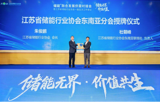 在会议上,江苏省储能行业协会东南亚分会的成立及授牌仪式隆重举行。此举强化了协会与国际同行的联系,促进了国内外储能技术的发展与应用,是协会服务企业“走出去”、拓展国际合作的重要举措。分会成立标志着协会对该区域的服务从2025年的“探索对接”阶段正式升级到2026年“深耕运营”的新阶段,将成为信息汇聚、资源匹配、项目落地的核心支点,助力中国储能企业在东南亚行稳致远。