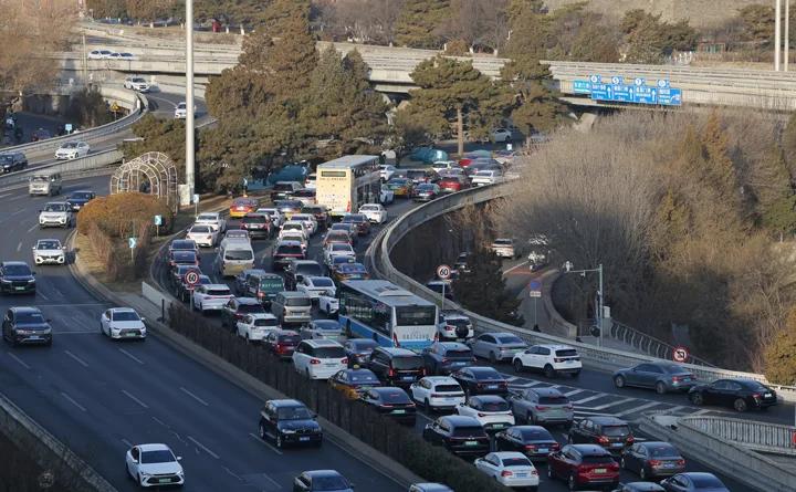 1月12日早高峰,二环路外环东便门桥下拥堵严重。新京报记者 王贵彬 摄