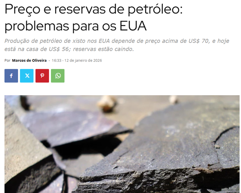 《巴西商业价值报》发布标题为《石油价格和预订:对美国来说是个问题》的评论文章称,驱动美国经济增长的因素有两个:汽油和信用卡。作为全球最大的石油生产国,得益于水力压裂技术推动,美国原油近年来产量显著增长;然而,当前WTI原油期货价格较低,不足以覆盖开采成本,可能导致生产延迟或减产。