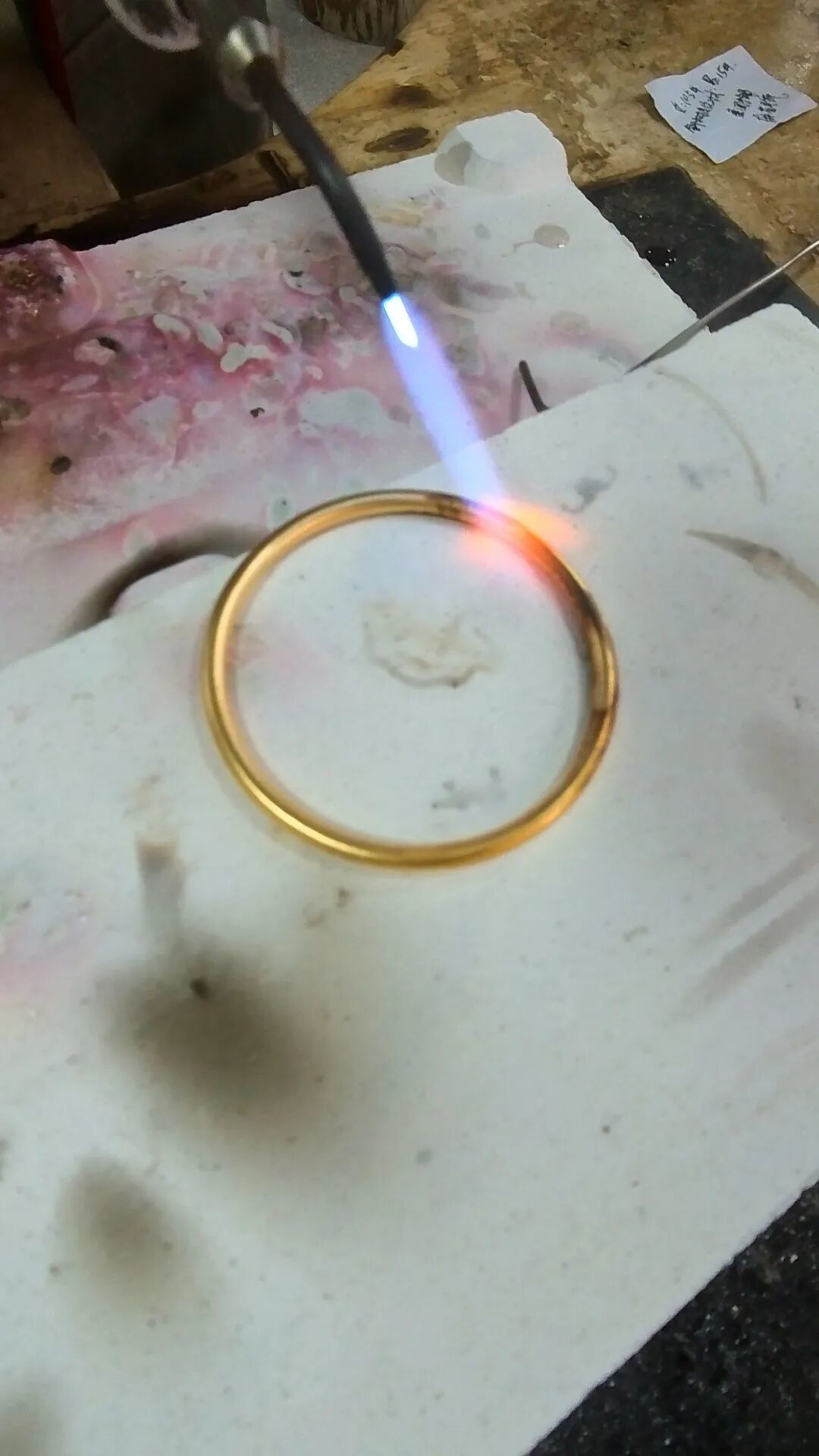 店主接过手镯后,表示需要通过“过火”来检验黄金是否为足金。杨女士当时并未多想,反正是足金的,不料店主用火枪烧了一会儿,金饰却变黑了。