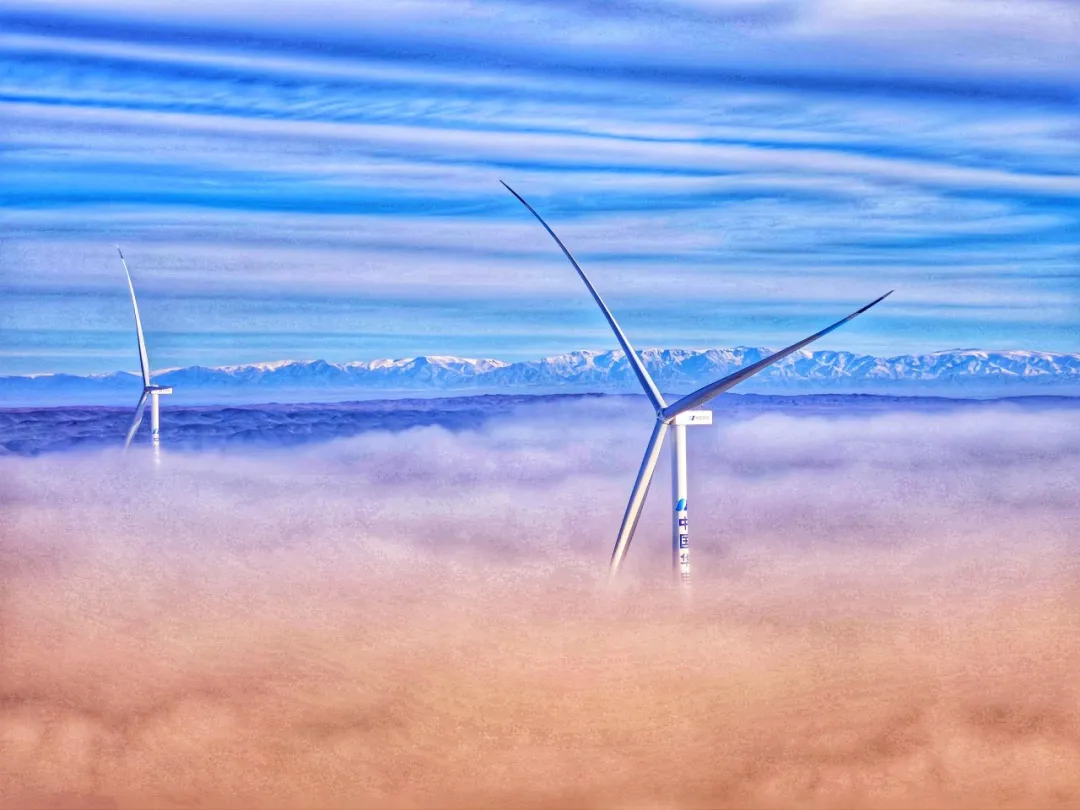 近日,“疆电入渝”特高压工程配套项目——华润电力重能新疆天山北麓新能源基地项目(以下简称“华润项目”)和新疆华电天山北麓基地610万千瓦新能源项目(以下简称“华电项目”)分别完成全部风机吊装及首批机组并网。金风科技为两项目分别提供210台GWH221-9.1MW机组,以及90台GWH221-11.1MW/12.1MW机组。