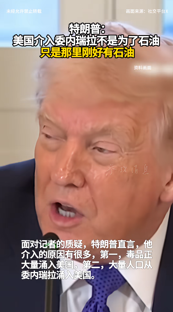 记者继续追问“真正让你下定决心的是石油,对吧?”特朗普表示:“不,并非如此,只是那里刚好有石油。”