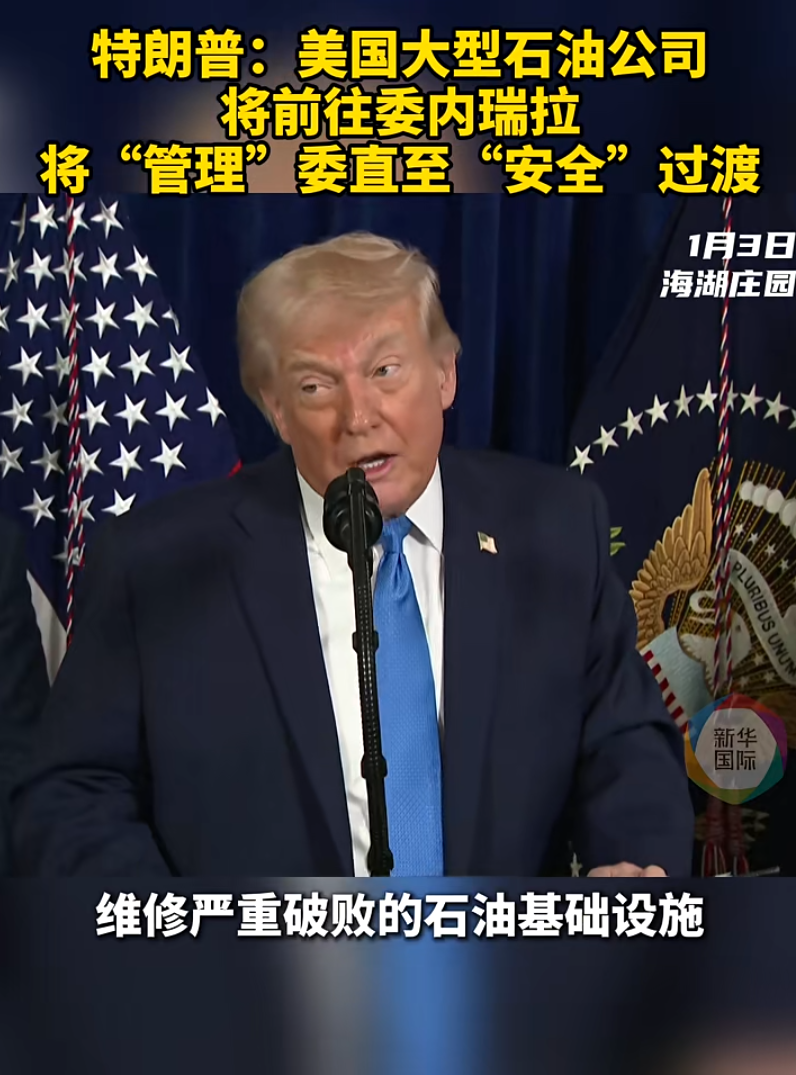 随后,特朗普还表示,将让美国大型石油公司前往委内瑞拉投资,重建石油基础设施并为美国“创造收益”。这一表态进一步显露美方染指委内瑞拉石油资源的企图。消息人士透露,特朗普计划8日召集美国石油巨头高管,商讨提高委内瑞拉石油产量事宜。