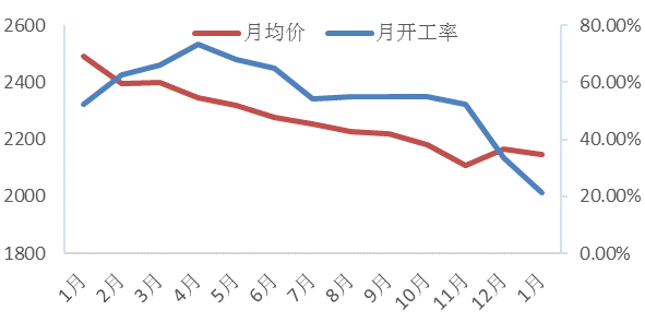 2025年11月至12月份,川渝地区开工率持续走低,价格则随开工率下降呈现反向上升的健康发展态势。然而进入2026年1月以来,尽管开工率继续下行,价格并未同步上扬,反而呈现震荡偏弱格局。
