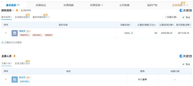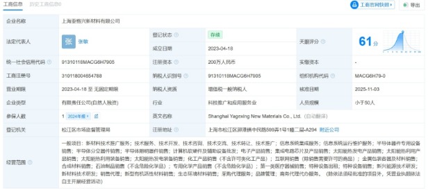 天眼查信息显示,上海亚格兴成立于2023年4月,注册资本200万元,公司唯一股东是自然人张敏,张敏同时担任法定代表人。
