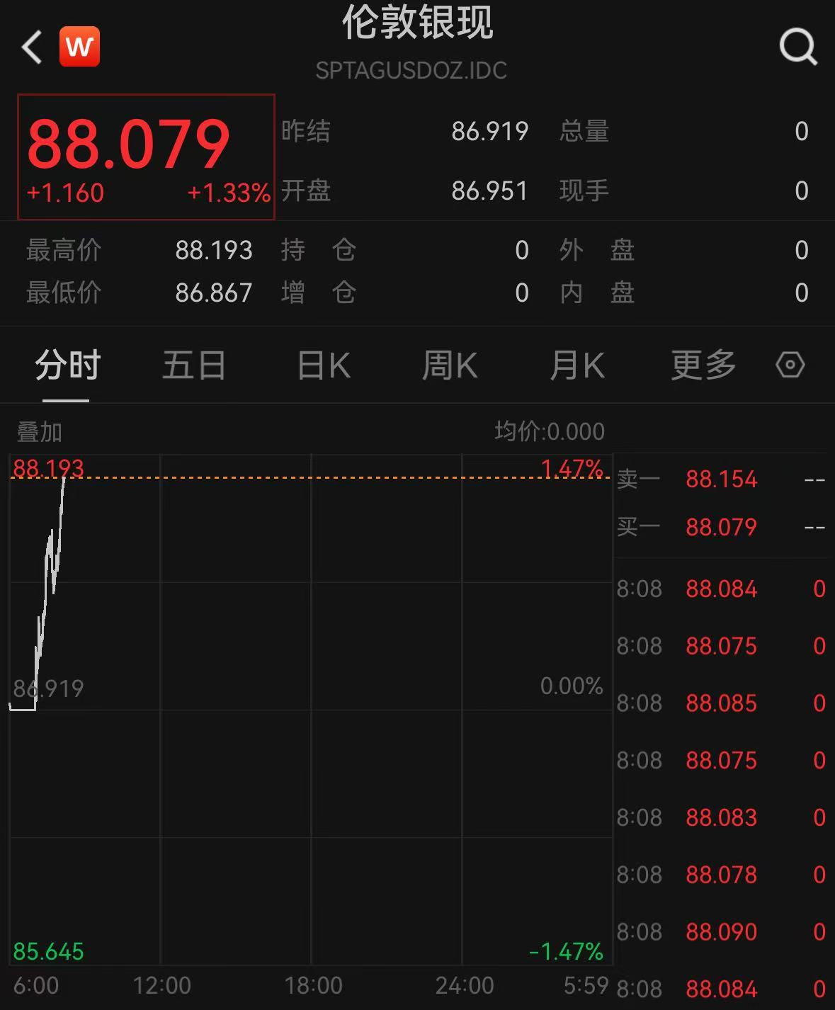 前一日晚,现货白银突破89美元创历史新高,随后涨幅有所收窄。