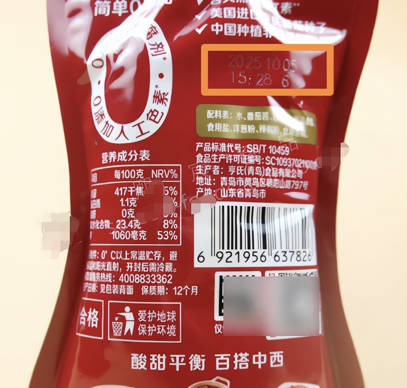 1月13日,经视直播记者在电商平台查询同款亨氏番茄沙司时发现,其背面醒目位置标有生产日期。