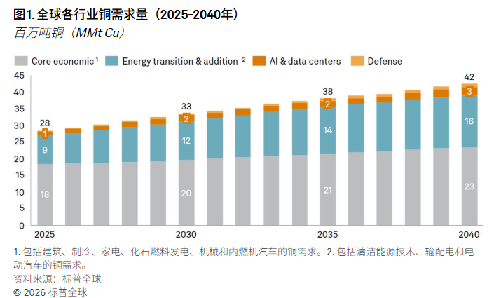 标普全球也在一份研究中指出,耗电量巨大的数据中心、全球向电动汽车的转型、即将安装的20亿台空调,以及未来的电气化武器都将消耗大量电力,从而带动铜的需求。