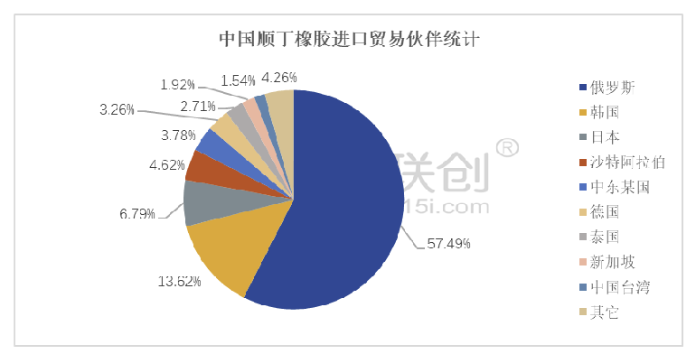 首先,进口方面来看。2025年1-11月中国顺丁橡胶进口总量为25.44万吨,进口来源国依次是俄罗斯、韩国、日本、沙特阿拉伯及中东某国等,分别占比为57.49%、13.62%、6.79%、4.62%、3.78%。自2022年俄乌冲突以来,由于地理位置以及价格的优势,俄罗斯顺丁进口量长期居于首位。伊朗顺丁橡胶通过中东某国转口至中国的顺丁橡胶占比为3.78%,虽然进口量占比位于前列,但由于俄罗斯顺丁橡胶的进口量体量远远超过伊朗顺丁橡胶,同时国内下游工厂对于伊朗顺丁橡胶接受程度有限,因此对于中国市场影响较小。其次,中国顺丁橡胶自身供应来看。随着中国顺丁橡胶产能不断增速,截至2025年中国顺丁橡胶总产能在217.2万吨,产能不断扩张下,2025年中国顺丁橡胶总产量达到156万吨附近。中国顺丁橡胶已从净进口转为净出口,对于未来,顺丁橡胶产能仍呈现逐年递增的趋势。伊朗顺丁橡胶对于中国顺丁橡胶的影响也将弱化。