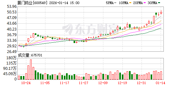 数据显示,截至1月14日收盘,公司股价报50.48元/股,收盘涨幅为2.96%。