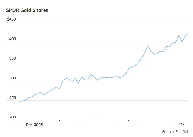 该ETF今年以来持续上涨,2025年涨幅高达近64%,创下自2004年底推出以来的最大年度涨幅。FactSet的数据还显示,该基金去年的飙升远超其之前最大的年度涨幅,即2007年逾30%的涨幅。