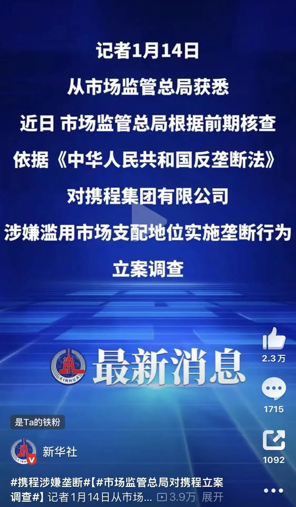 消息一出,迅速在网络上引发广泛共鸣,许多普通网友的第一反应是“终于等到了”。叫好声的背后,是公众对平台经济领域长期存在的“店大欺客”现象,积压已久的不满。此次调查虽然只针对携程,但也如同一把利剑,为整个行业划出了更鲜明的法律红线,标明了更清晰的落点。