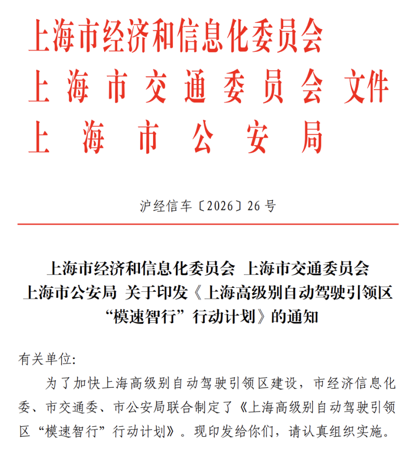 1月14日消息,上海市经济和信息化委员会、上海市交通委员会、上海市公安局印发《上海高级别自动驾驶引领区“模速智行”行动计划》(以下简称《行动计划》),其中提出,按照“模型驱动引领、应用示范带动、产业协同发展、政策举措支撑”的总体思路,推动自动驾驶技术创新向产业竞争力加速转化。