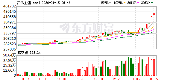 据介绍,当前锡现货价格同步也创历史新高,Mysteel1#锡价高价单日暴涨7.6%至412000元/吨。短期内期货涨势正引领现货报价、重构定价基准,并且企业风险管理需求逐步加大。