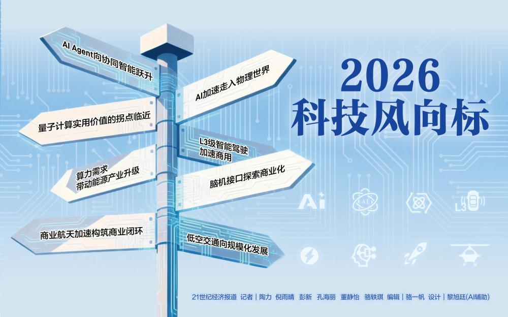 21世纪经济报道科技团队在采访行业专家和资深从业人员的基础上,经过深入讨论和研究,系统梳理出了2025年全球重大科技事件,观察和透视2026年行业发展新趋势,力图呈现科技浪潮下的产业变革与未来图景。