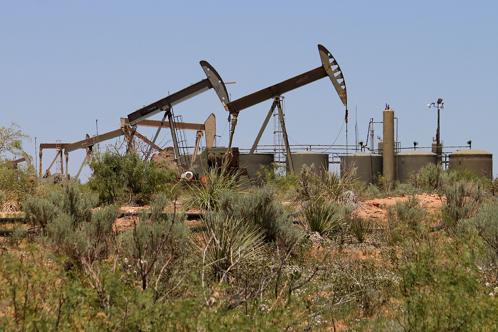 美国二叠纪盆地的抽油机正在运行。(视觉中国)