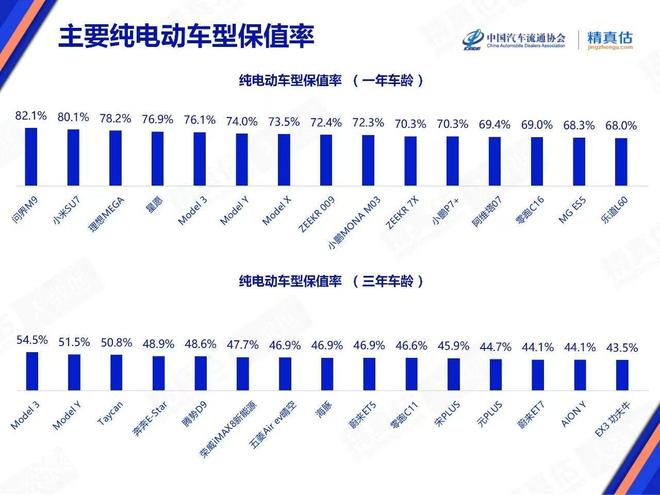 部分纯电车型保值率 图源:中国汽车流通协会