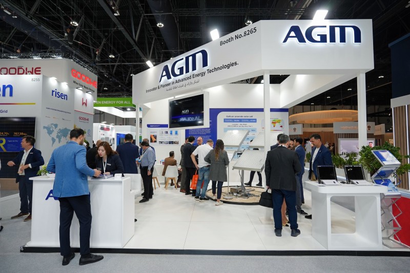展会期间,AGM展位人气爆棚,集团CEO接受多家主流媒体访问。其展示的砷化镓聚光光伏系统、钙钛矿光伏组件、户用储能一体柜及新型储能电池四大核心产品,因适配中东高辐射、高温环境的定制化优势备受瞩目。其中砷化镓系统“同等面积1.5倍装机容量”的高效特性,及新型储能电池安全环保、长循环寿命等亮点,获现场客户高度认可。