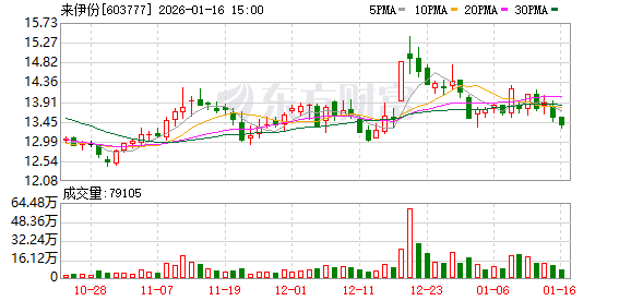 据大智慧VIP,截至1月16日收盘,来伊份报13.36元/股,跌1.18%,总市值45亿元。