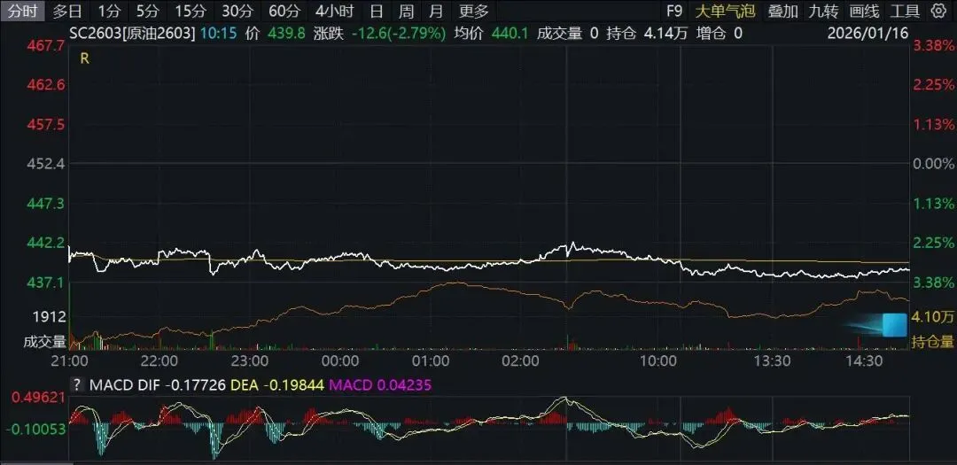经历前期显著上行后,近两日原油价格出现回调。1月16日,国内期货市场原油主力合约2603跌超3%,国际原油价格也再度回落至60美元/桶下方。