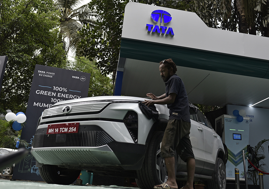 印度塔塔集团位于孟买的电动汽车充电中心。 (视觉中国)