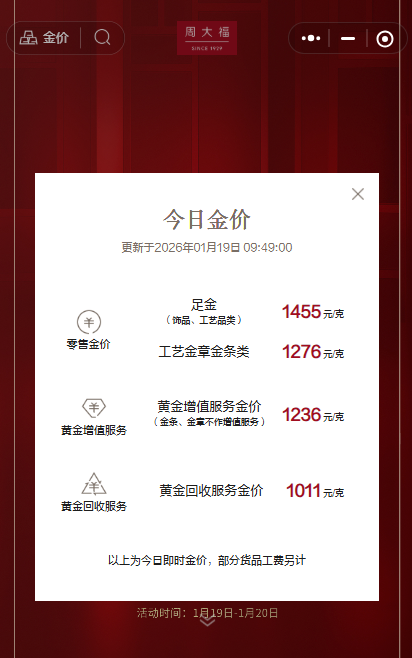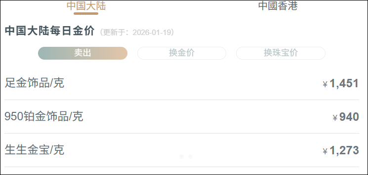 1月18日金价参考