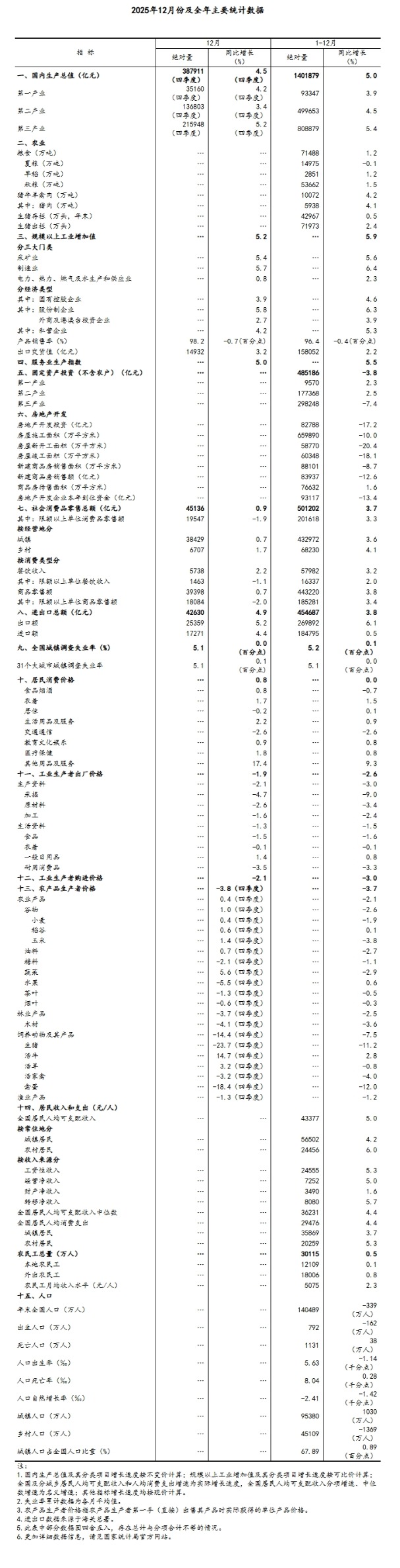 总的来看,2025年国民经济顶住多重压力保持稳中有进发展态势,高质量发展取得新成效。但也要看到,外部环境变化影响加深,国内供强需弱矛盾突出,经济发展中老问题、新挑战仍然不少。下阶段,要坚持以习近平新时代中国特色社会主义思想为指导,全面贯彻落实党的二十大、二十届历次全会精神和中央经济工作会议部署要求,坚持稳中求进、提质增效,实施更加积极有为的宏观政策,持续扩大内需、优化供给,做优增量、盘活存量,因地制宜发展新质生产力,纵深推进全国统一大市场建设,推动经济实现质的有效提升和量的合理增长,确保“十五五”开好局、起好步。