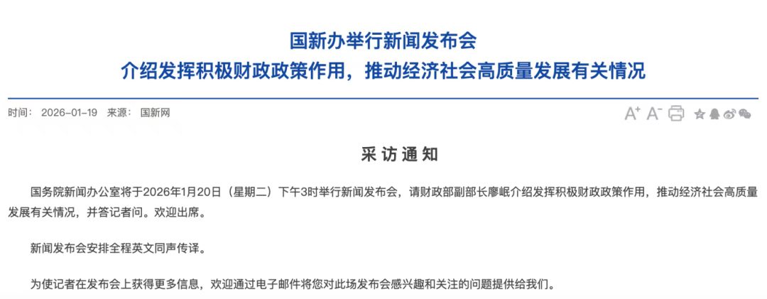 据国新网消息,1月20日,国新办将举行两场新闻发布会,均与经济相关。