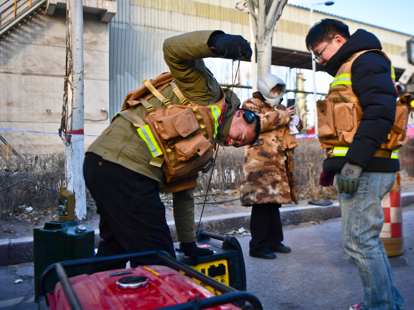 在事故现场可以看到,来自消防、应急、公安、医疗等多支专业救援队伍仍在如此寒冷的天气下,紧张开展排险救援工作,与时间赛跑。目前共有1192人参与救援。