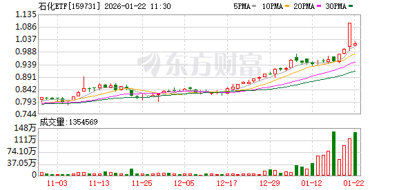 1月21日,石化ETF(159731)全天在1%幅度内震荡,尾盘集合竞价阶段,出现突然拉升至涨停,成交9920手,收报1.1元,集合竞价阶段成交金额为109.1万元。