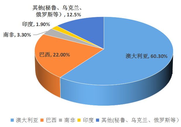 图为2025年中国铁矿石进口来源结构