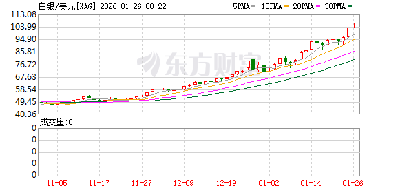 现货黄金首次突破5000美元/盎司,日内涨0.5%。现货白银盘初再创新高,现报104.76美元/盎司,涨幅超1%。