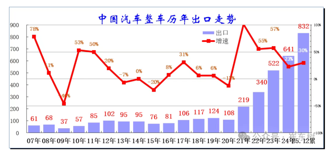 崔东树公布的数据显示,2025年12月中国汽车实现出口99万辆,同比增73%,环比增23%,同比和环比走势总体较强;全年中国汽车实现出口832万辆,同比2024年全年增速30%。