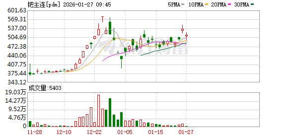 1月26日,铂族金属跟随金属板块同步大涨。截至当日收盘,铂期货主力2606合约上涨9.68%,报744.70元/克;钯期货主力2606合约大幅上涨7.17%,报534.80元/克。