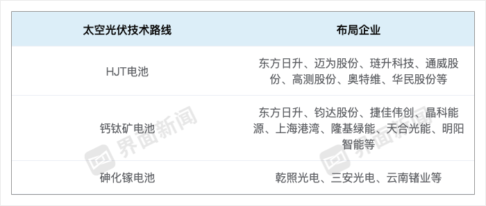 目前,业内公认的太空光伏实现路径,主要有三条技术路线,即砷化镓、异质结(HJT)和钙钛矿电池。