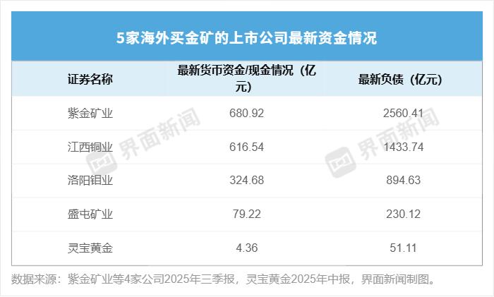界面新闻粗略统计下来,上述5家上市矿企近一年多合计出资超660亿元出海买金矿。对于各家公司来说,这都是一笔不小的开支。